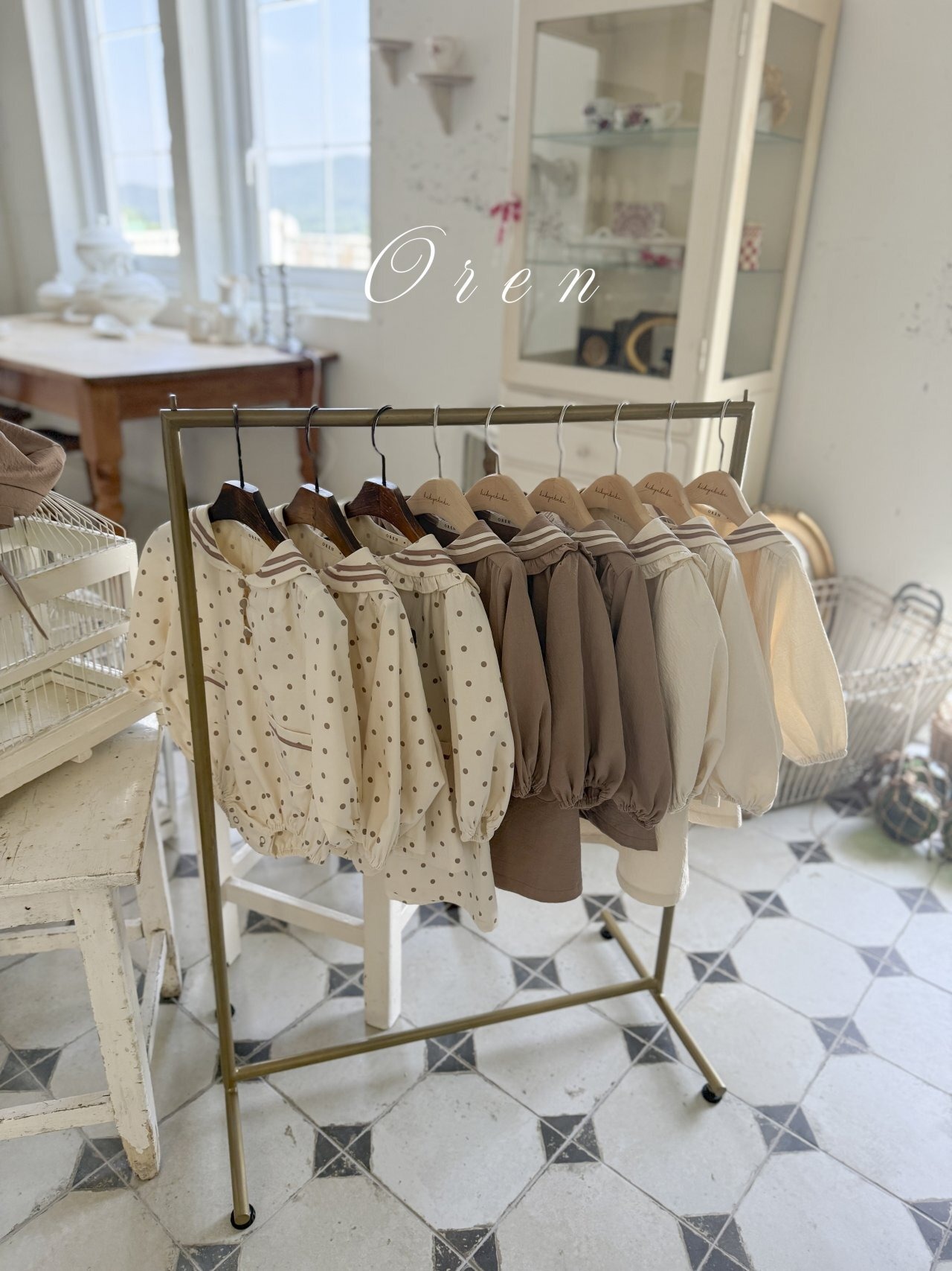 セーラーカラーや丸みのあるポケット、落ち着いた色合いのボタンが、ヴィンテージライクでありながら洗練された印象を与えます。