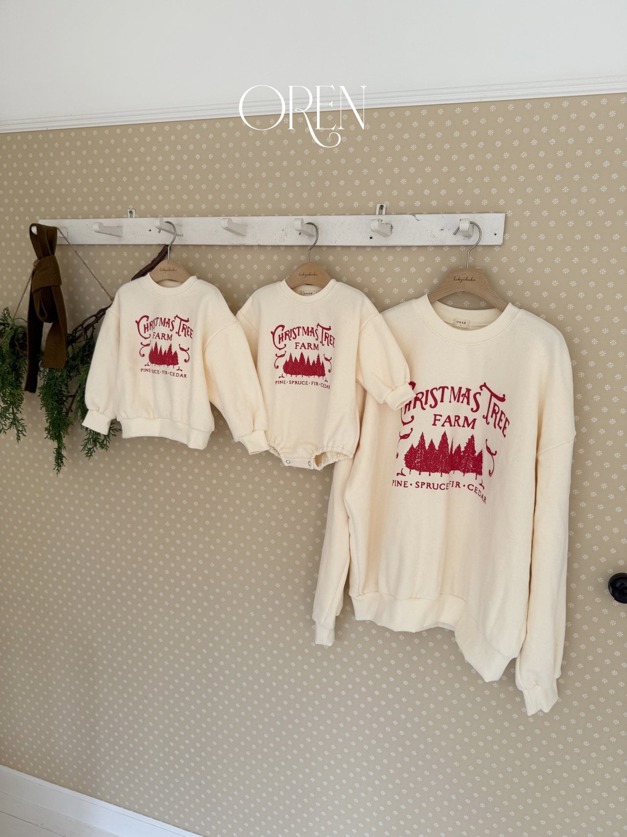 リラックスしたシルエットと愛らしいツリープリントが、クリスマスの温かみのある雰囲気を完璧に捉えています。