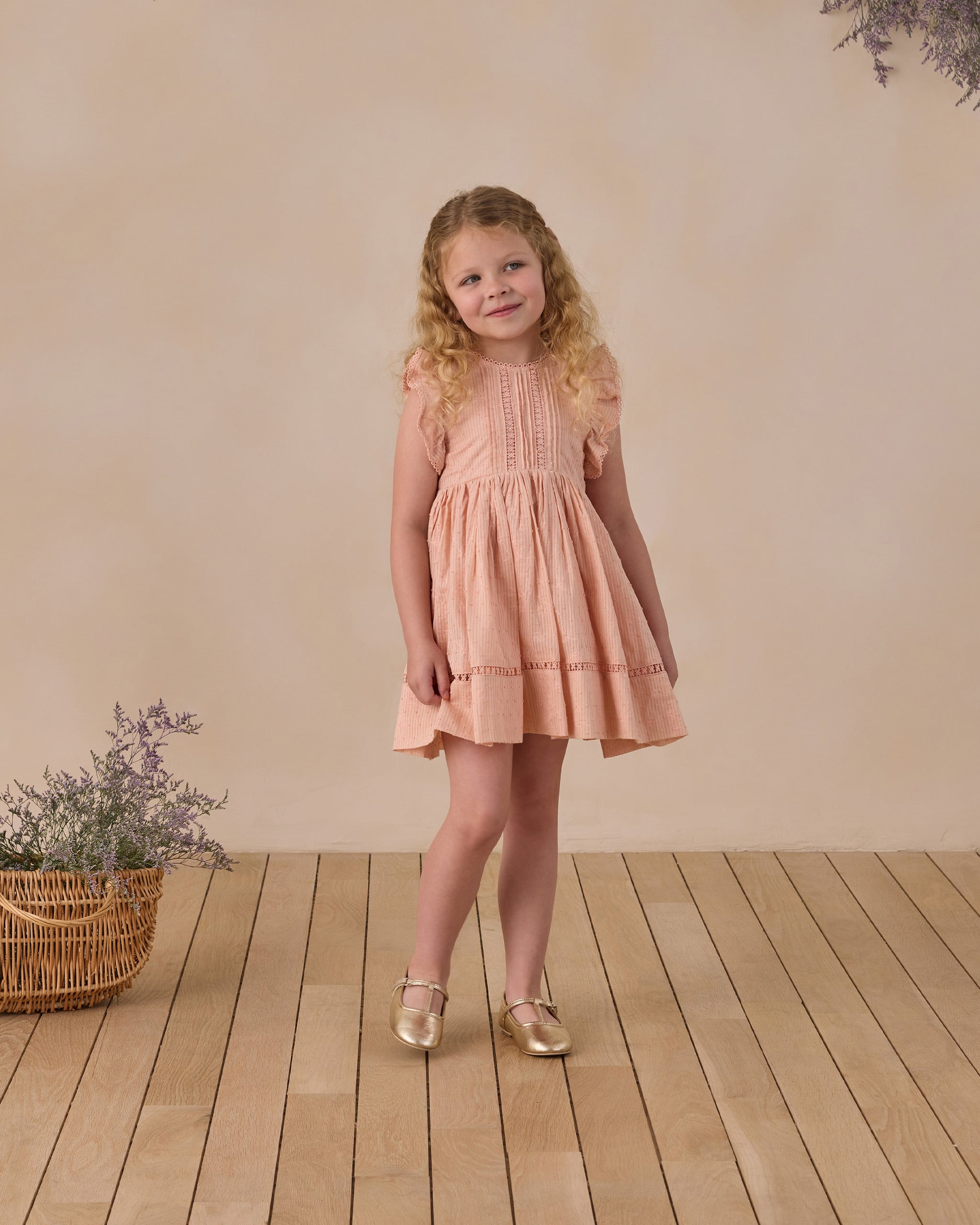 愛らしいレースとピンタックのディテールが、Isla Dress を最高にキュートなシルエットに仕上げています。温かみのある「花びら」のような色合いが特徴です。