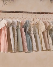 ノラリーは、繊細なディテールとロマンスに溢れる⼀点物のヴィンテージドレスにインスパイアされています。Kelli Murray Larson + チームによりデザインされるたくさんのドレスは、柔らかな⾊彩と質感のレイヤーが織りなす愛の表現であり、⼀点⼀点が独自のストーリーを抱いて生み出されます。